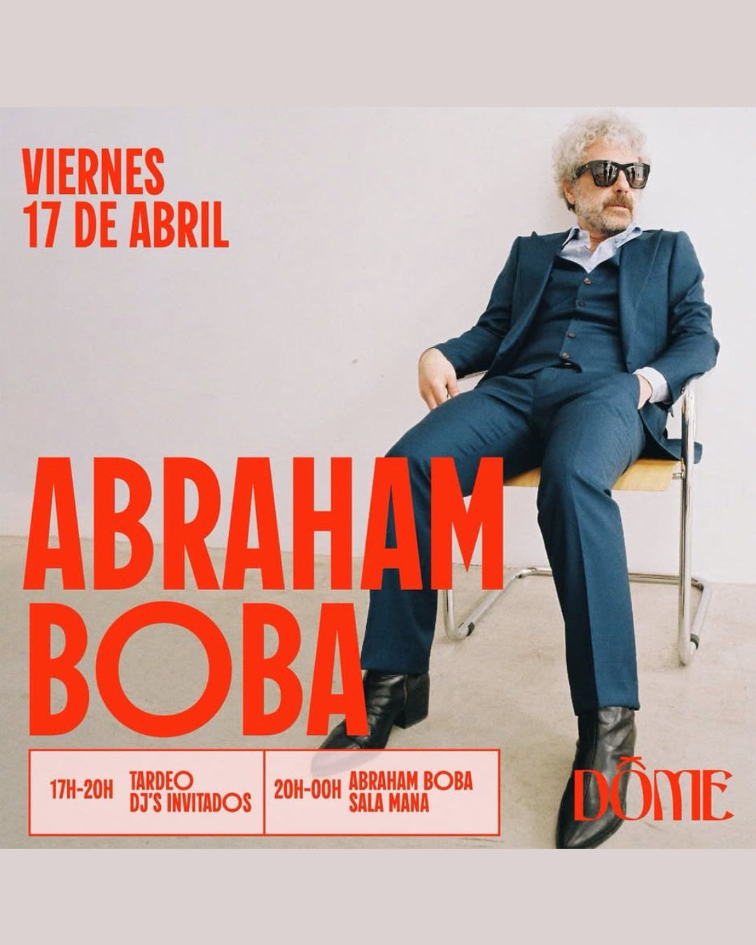 Dôme Palma hosts a special event featuring Abraham Boba, transforming the venue into a music-focused setting that moves from an early evening session into a late-night performance. Known for his distinctive style and presence, Abraham Boba leads the programme with a set that extends into the night.