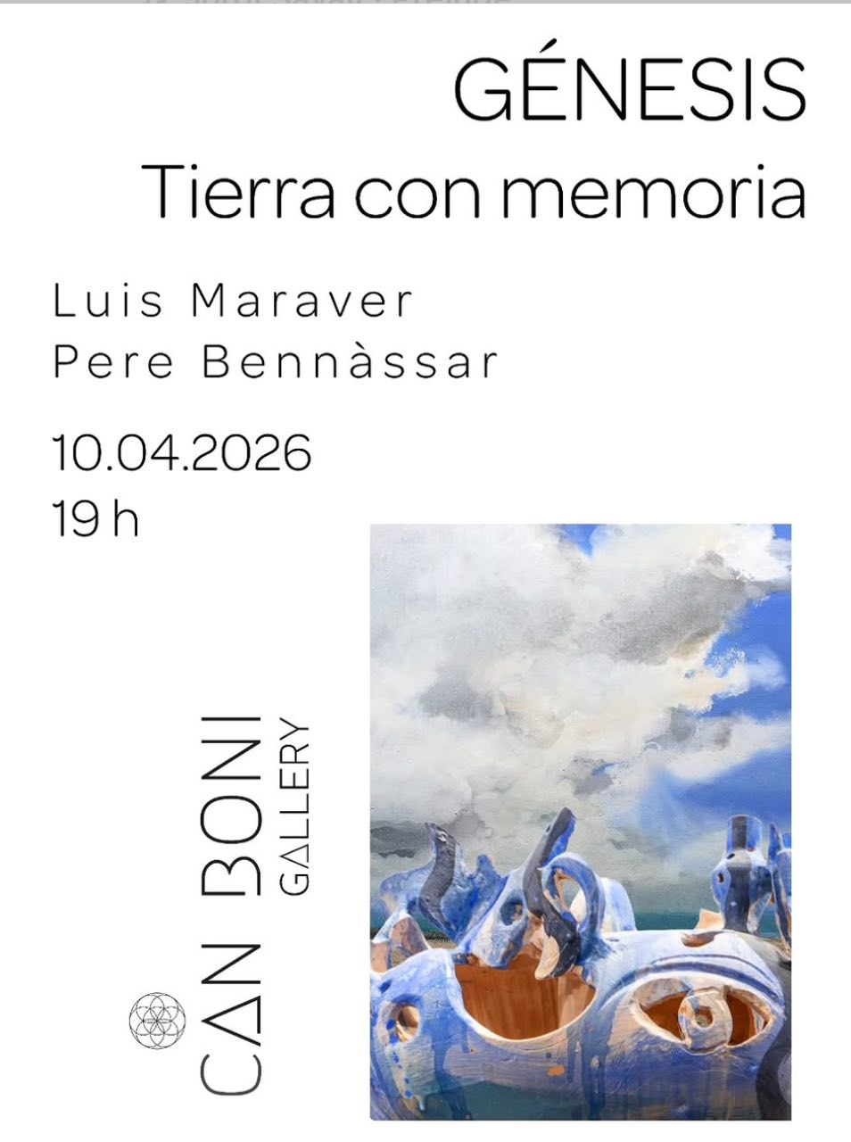 Can Boni Gallery in Palma de Mallorca presents Génesis – Tierra con Memoria, a contemporary art exhibition featuring Luis Maraver and Pere Bennàssar. As part of the art exhibition Mallorca scene, the show explores themes of origin, transformation and the relationship between material and creation, contributing to the wider Mallorca events cultural landscape.