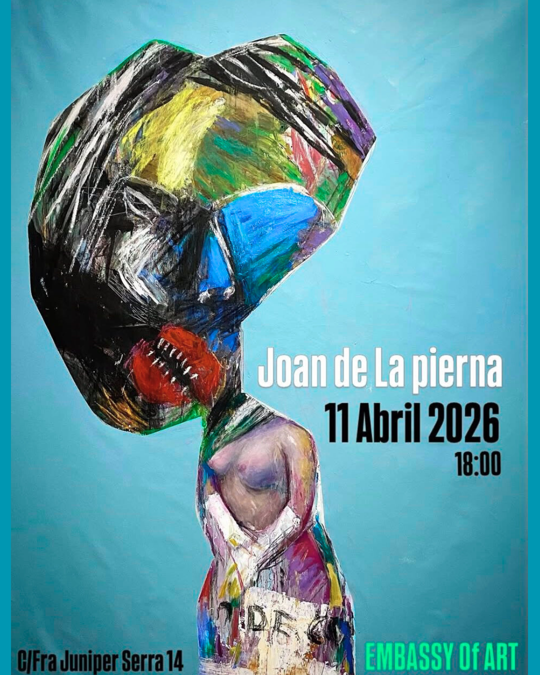 A new exhibition by Joan de la Piena will open at Embassy of Art in Palma de Mallorca on 11 April 2026. Known for his expressive and unconventional visual language, the artist presents a body of work that explores identity, emotion and the fragmented nature of human perception. Joan de la Piena’s work is characterised by bold colour compositions, distorted forms and a raw, almost instinctive style. His pieces often blur the boundaries between figurative and abstract art, creating striking portraits that feel both intimate and unsettling. Through layered textures and vivid contrasts, his work reflects a deeply personal yet universal narrative. This exhibition offers an insight into his evolving artistic approach, bringing together pieces that challenge traditional representation while inviting reflection on contemporary themes.