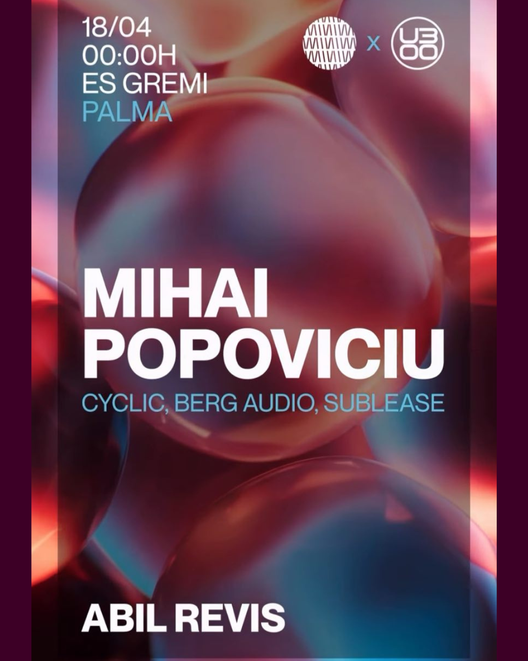 Es Gremi in Palma de Mallorca hosts a dedicated electronic music night under the U300 series, featuring Romanian artist Mihai Popoviciu alongside Abil Revis. Known for his releases on labels such as Cyclic, Berg Audio and Sublease, Mihai Popoviciu brings his signature style of deep, minimal and groove-driven house music to Palma de Mallorca. Supporting artist Abil Revis complements the night with a selection of stripped-back rhythms and underground textures, shaping a cohesive musical journey.