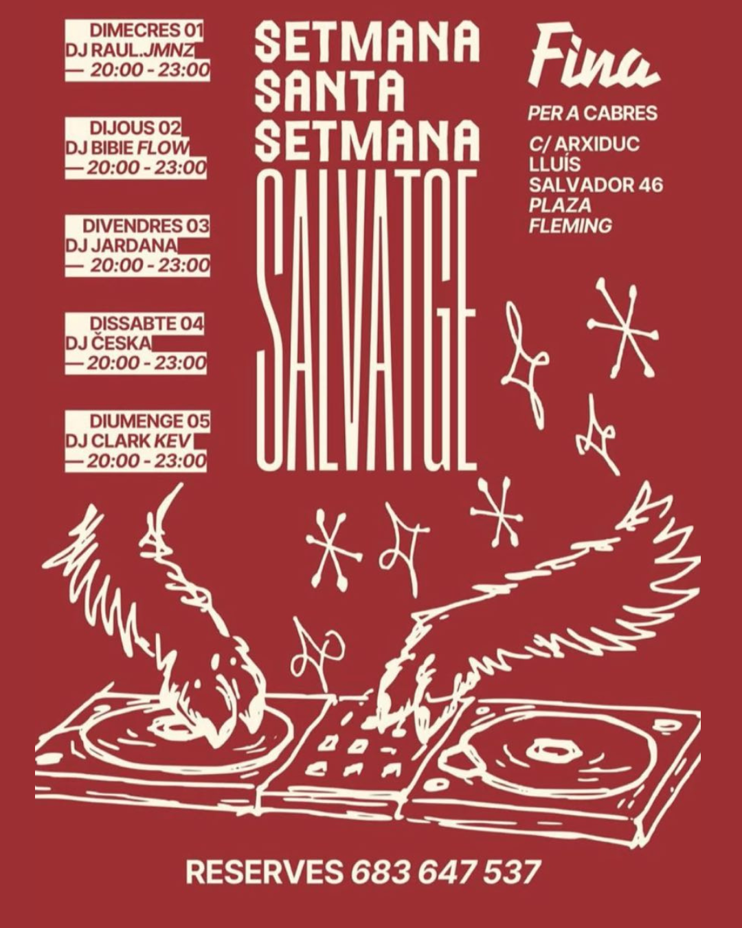 Fina in Palma de Mallorca presents a Semana Santa programme combining dinner service with daily DJ sessions throughout the Easter week. Across the week, different DJs shape the atmosphere each evening, including Raul Jmnz, Bibie Flow, Jardana, Česka and Clark Kev, delivering a mix of electronic and eclectic sounds designed to accompany dinner and early evening gatherings.