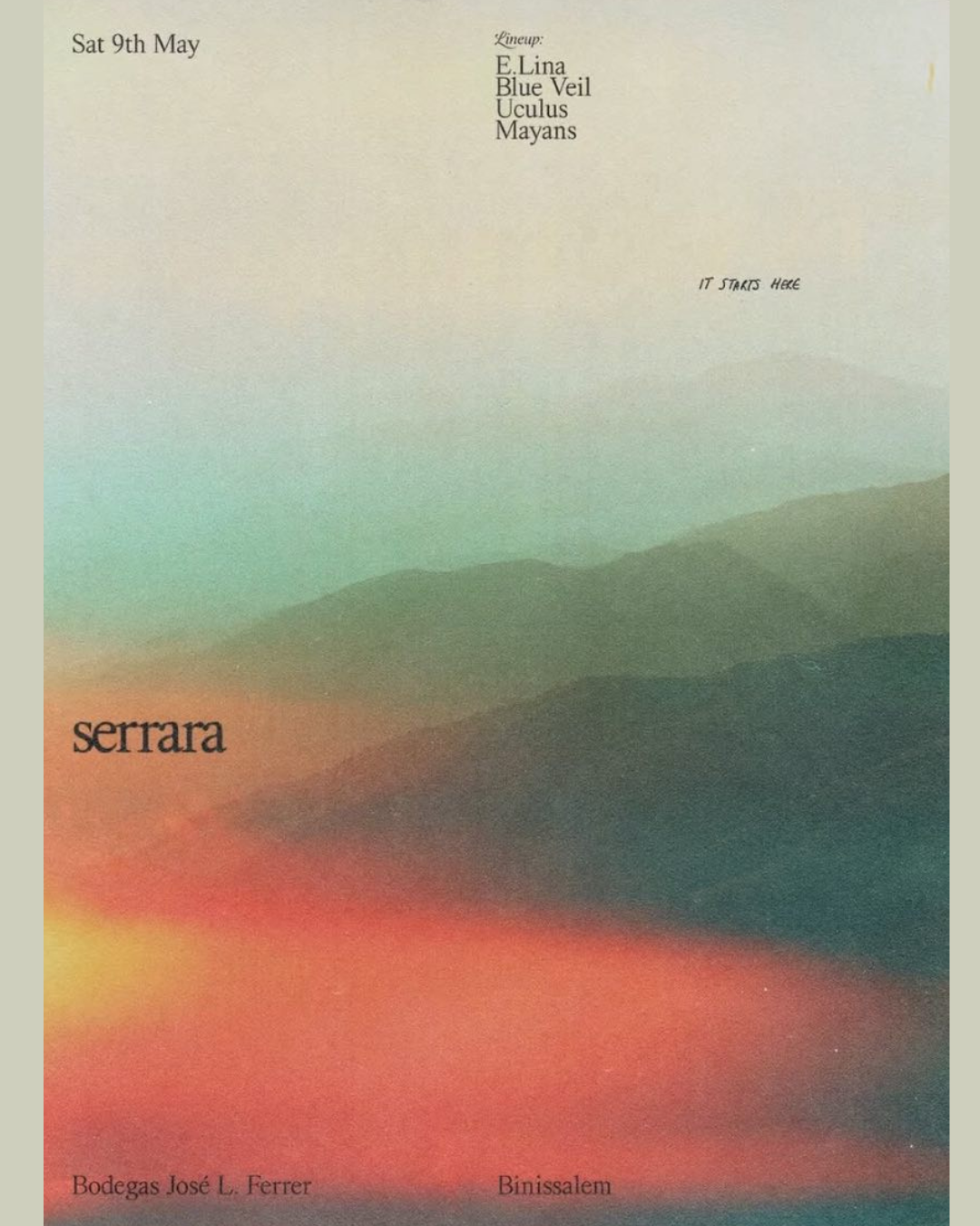 Serrara is centred around a small-scale outdoor dancefloor, focusing on deep and immersive sounds, extended daylight sessions and a community-driven experience. The lineup features E.Lina, Blue Veil, Uculus and Mayans, creating a programme shaped by underground electronic music and refined selection.